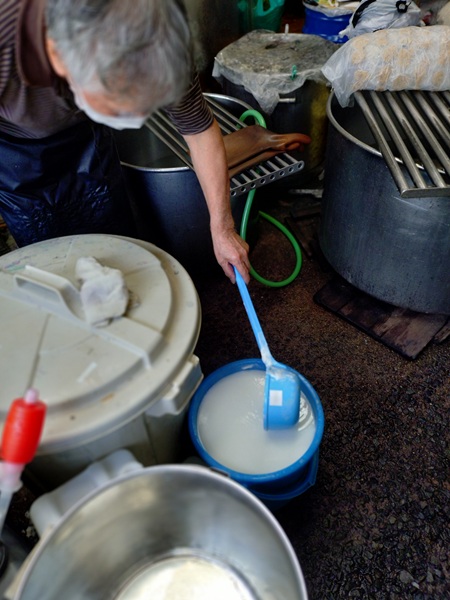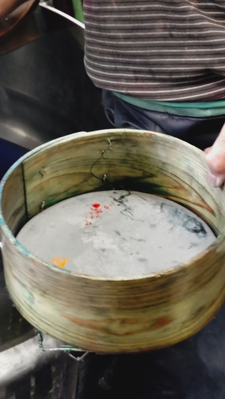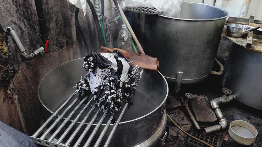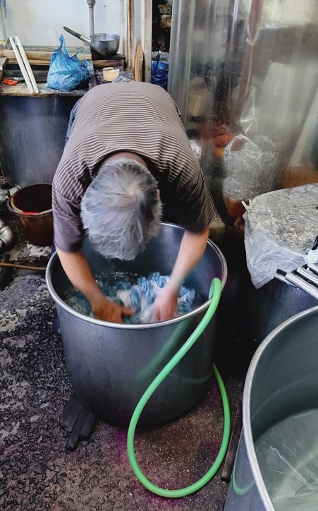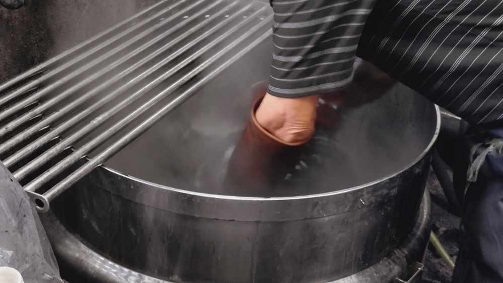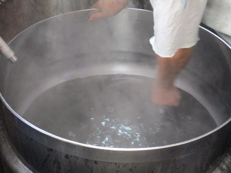 →染料と助剤を釜に入れてなじませる