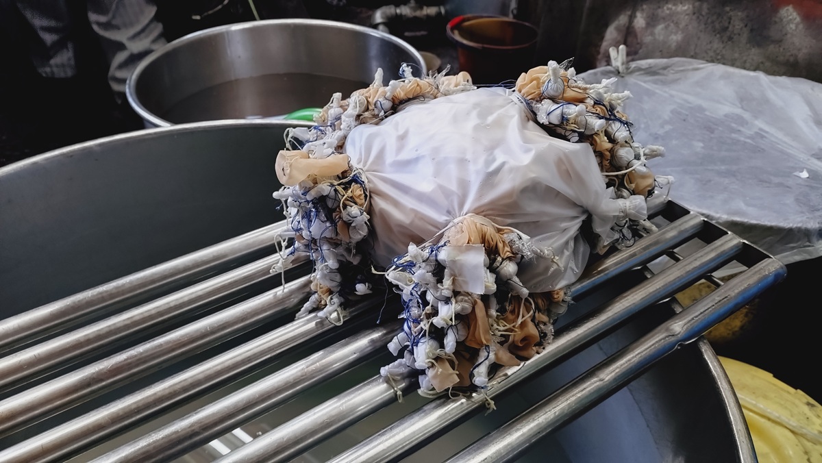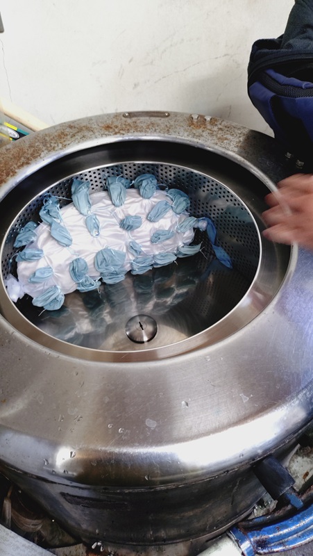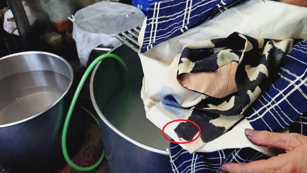 →生地を水洗いする 次はほどきの工程です。