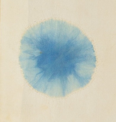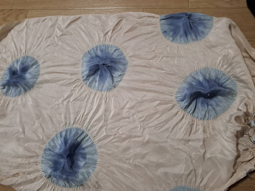 水玉文様の染め(ばくだん染め・濃い水色)