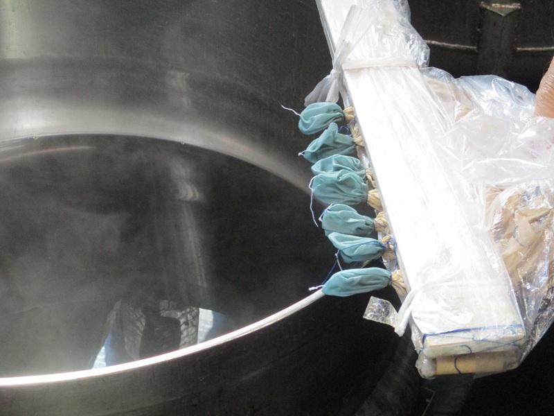 | 釜に染料を入れる | 助剤を加える | 生地を釜に入れる |