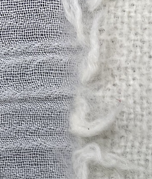 一定間隔でウール糸を二重織にしたボーダー柄の布地。