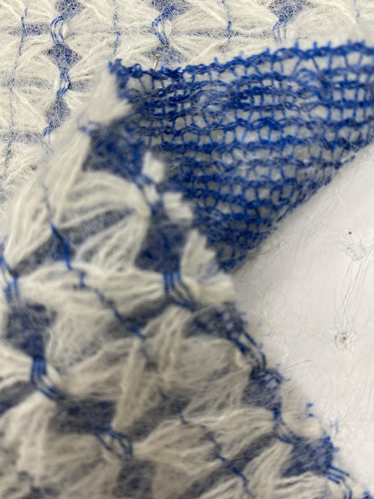 経編みのラッセル地に無撚のモヘアを左右バイアス状に編み込み、立体感と温かみのある柔らかい布地。