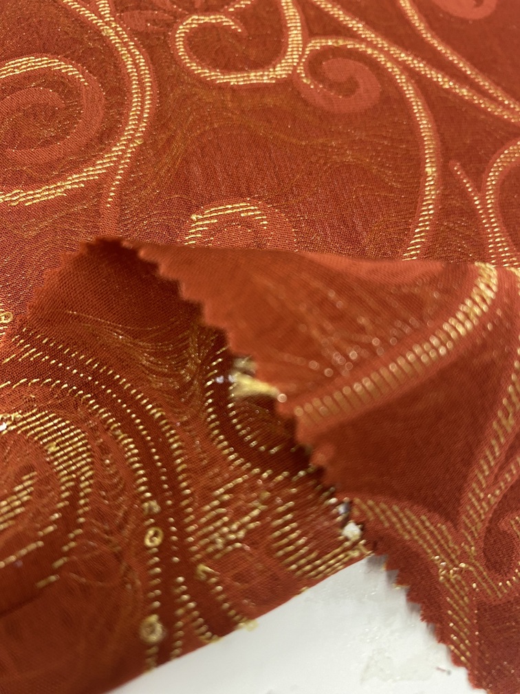 透け感のある風通(二重織)に金糸が使われていることで、柔らかい風合いとゴージャス感が醸し出された布地。